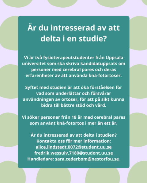 Möjlighet att delta i studie om knä-fotortoser!